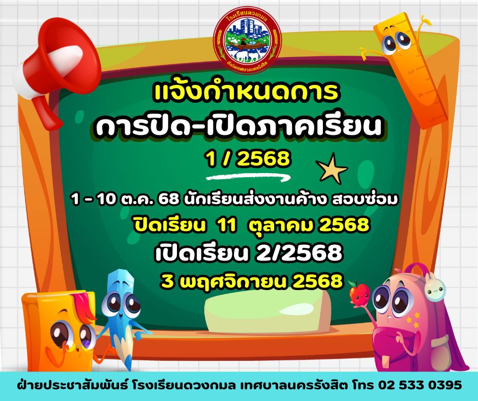 #โรงเรียนดวงกมล เทศบาลนครรังสิต #แจ้งกำหนดการเปิดปิดภาคเรียน ประจำปีการศึกษา 2568