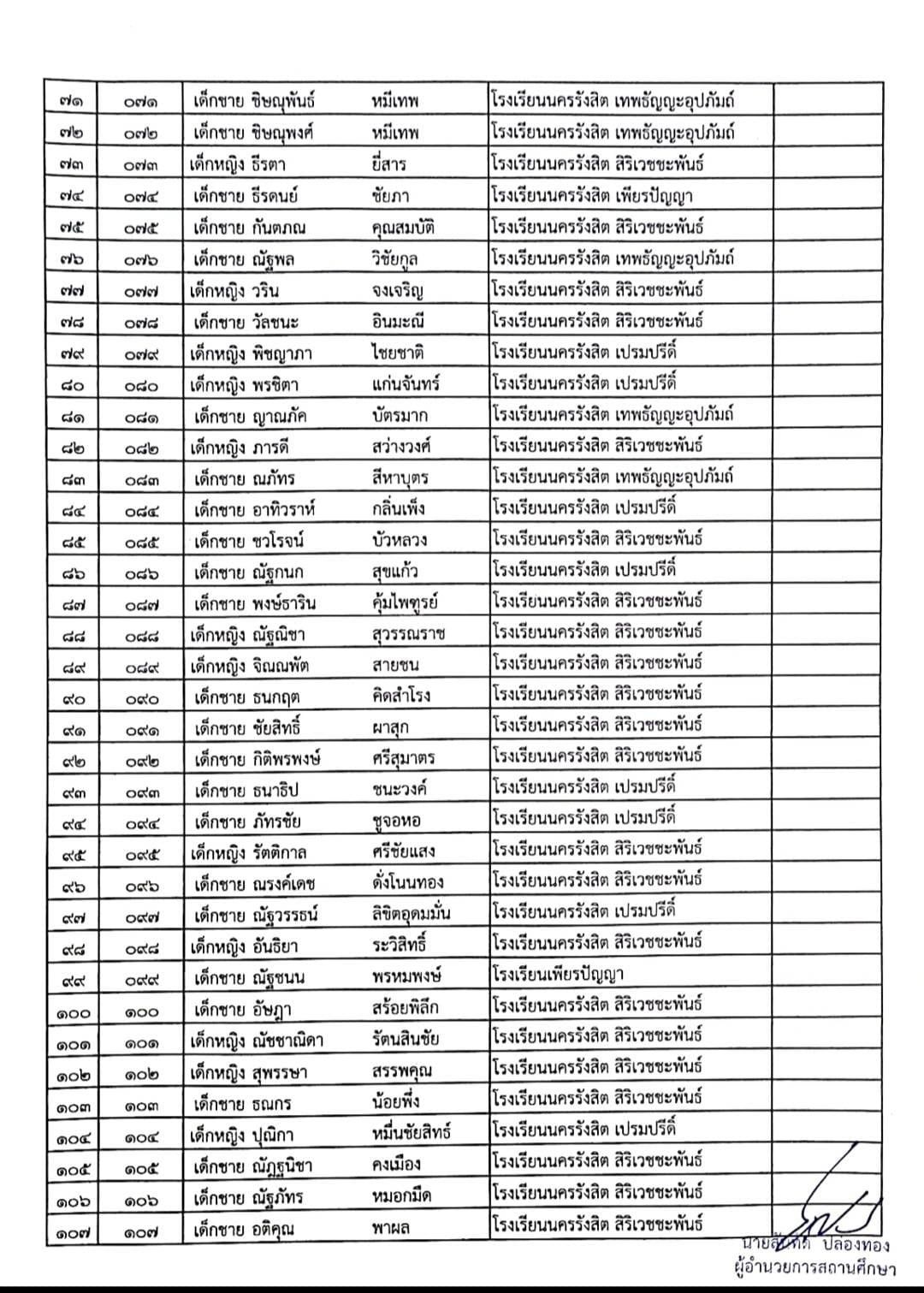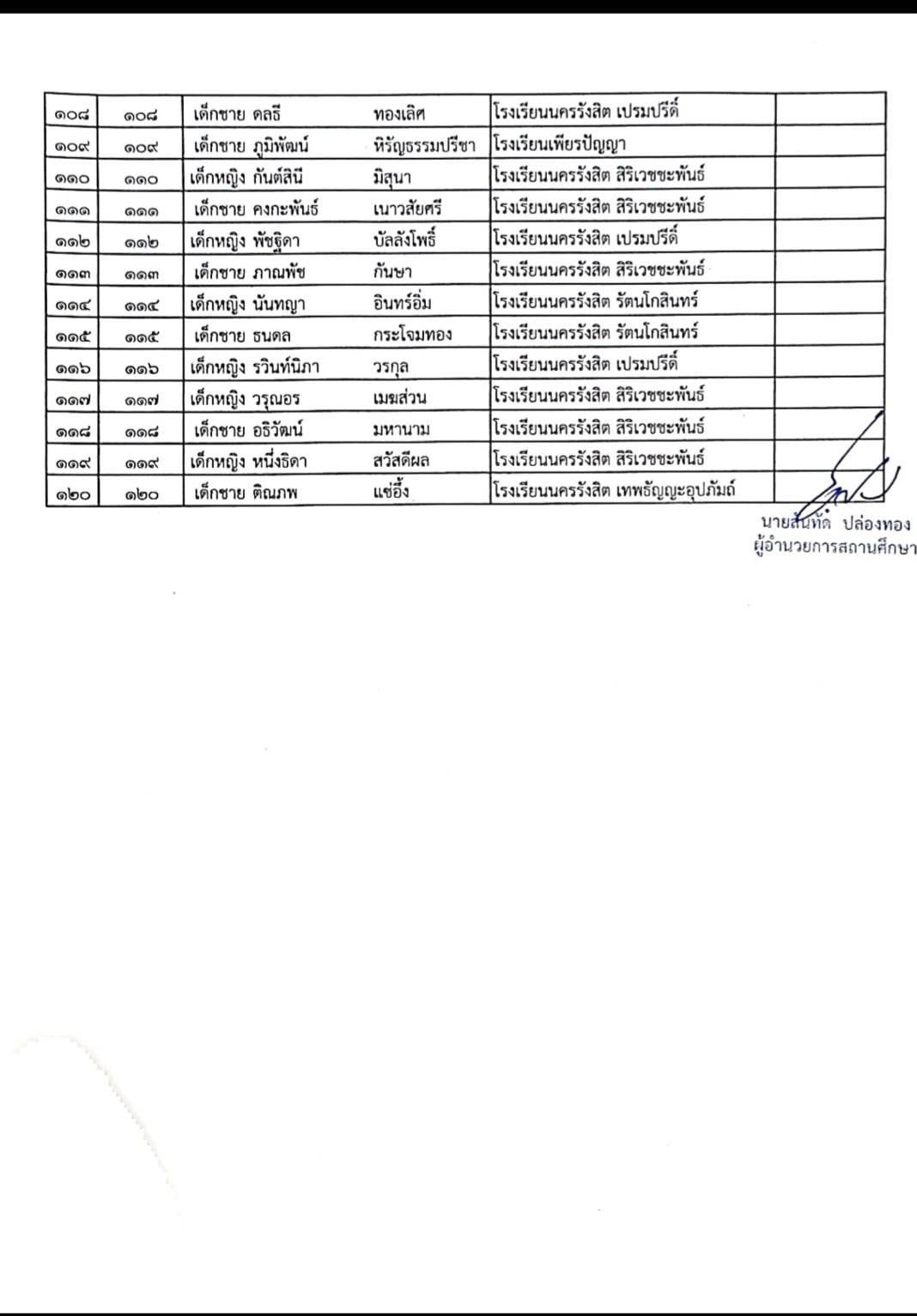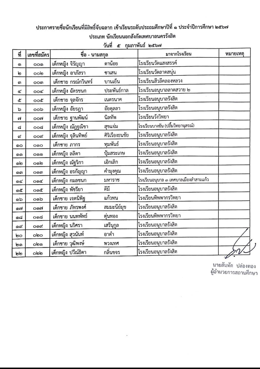 ประกาศรายชื่อผู้สมัครเข้าเรียน